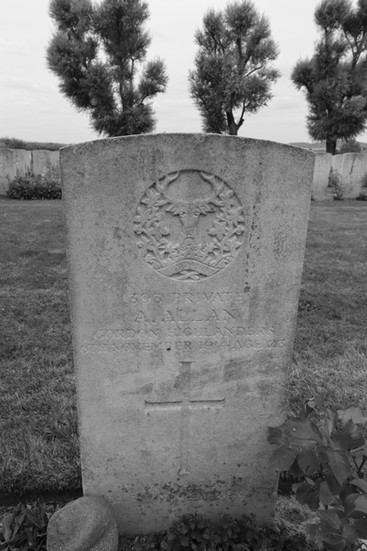In the Ypres Salient, we are drawn to the graves of 6322 Private John Condon, 2nd Battalion Royal Irish Regiment, killed in action in May 1915, age 14 and the youngest known battle casualty of the war, although this is now questioned, and the grave of 5750 Valentine Strudwick, 8th Rifle Brigade, killed in action in January 1916, age 15. Strudwicks grave attracts a great deal of attention because of its location at Essex Farm and that locations association with Lieutenant Colonel John McCrae and the poem ‘In Flanders Fields.’ There are many more ‘Boy Soldiers’ buried across the Salient and who are not remembered in the same way and these include three from Falkirk District Private William Jamieson, age 17, Private James Duchart, age 16, and Private Herbert Richmond, age 17, There were many reasons why underage boys enlisted in 1914 and 1915 boredom with their jobs, looking for adventure, and escaping family pressures. The checks on age and qualification to enlist were more relaxed than later in the war. The army preferred younger recruits, there was a history of boy soldiers in the army going back over one hundred years. At Waterloo the army had a number of boy soldiers in their ranks. The army preferred younger recruits as they would follow orders and accept discipline more readily than older men. The boys had a belief in their own indestructibility and were prepared to take more risks. We tend to also forget the number of boys who served in the Royal Navy and we do not seem to have the same passionate response to their service as we do those who fought on the Western Front. With regards to army, the difference was the sheer number who served on the Western Front and there were more boy soldiers in 1915 than served in Wellington’s army at Waterloo. For further reading on this subject I recommend Richard Van Emden’s excellent book Boy Soldiers of the Great War. 38416 L/Cpl Albert Edgar Furness, 11th Battalion Lancashire Fusiliers, 74th Infantry Brigade, 25th Division. Killed in action 7 June 1917, age 16. Grave II.E.20. Son of Mrs. Mabel Susannah Shepherd, of "Greenroyd", Watling Street Road, Fulwood, Preston. The 1911 Census shows Albert, then aged 10, living at home with his mother, father John having died, and three sisters and two brothers. His mother later married. His body was exhumed from Bell Farm Cemetery, where 32 soldiers of the 25th Division were buried in June 1917, and he was reburied here after the Armistice. As part of 25th Division the Battalion took part in the opening attack of the Battle of Messines on 7 June 1917. On the night of 6/7 June the Battalion was in their assembly area at Souvenir Farm located east of Wulverghem. From 11am to 3pm they were shelled with gas and lachrymatory shells while in their assembly trenches. At 3.10am with the detonation of the mines, the one in the Brigade sector was at Ontario Farm, which was opposite the 2nd Royal Irish Rifles, ‘A’ and ‘B’ Companies went forward in artillery formation. By 4am the Battalion was now beyond Messines, which was on their right, and had captured Occur Trench with two machine guns and 61 prisoners and was at Intermediate Trench, which the War Diary records as not existing, by 4.30am. At 5am they had reached October Trench and in conjunction with the 9th Loyal North Lancs and taken Swaynes Farm and 4 Huns Farm and a concrete dugout in conjunction with the 1st Wiltshires. They now consolidated the line at October Support Trench and were relieved by the 13th Cheshires and took up a line at Occur Trench at 1pm. Battalion casualties were: 1 officer killed, 7 wounded. Other Ranks, 33 killed, 136 wounded, and 6 missing. 9704 Rifleman Bernard McAllister, 2nd Battalion Royal Irish Rifles, 74th Infantry Brigade, 25th Division. Killed in action 22 June 1917, age 17. Grave II.D.24. Son of Mrs Annie McAlister, 5 Downshire Court Lower Water Street, Newry. His body was exhumed and reburied here after the Armistice. The Battalion were in Support Trenches south east of Messines, the front line being opposite Warneton. The War Diary records that on 22 June they were relieved by the 43rd Battalion Australian Infantry and they then moved to the transport lines on the Wulverghem to Neuve Eglise Road. The War Diary recording Battalion casualties as 2 killed in action and one dying of wounds.