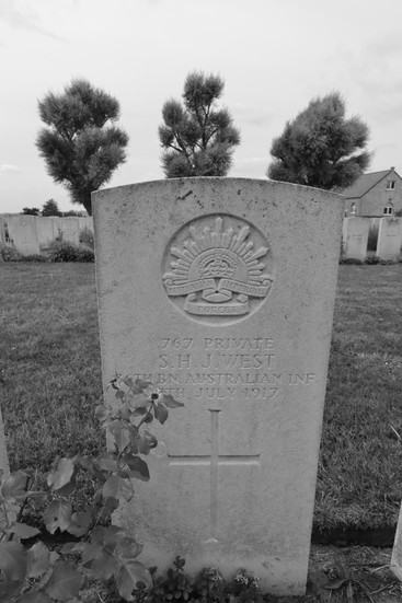 There are three men buried here who served under an alias. Two are Australian and one is from New Zealand. 767 Private Sidney Henry John West (served under the alias of Herbert Allan Grace), ‘C’ Company, 36th Battalion, 9th Brigade, 3rd Australian Division. Killed in action 7 July 1917, age 25. Grave V.A.23. Husband of Ethel May West, 7 Oaks Street, North Sydney, New South Wales. They had a son William. He had originally enlisted on 10 February 1915 under his real name and correct family history and was posted to the 5th Reinforcements, 3rd Battalion. Having been posted to Egypt and was admitted to hospital in Abassia on 18 June 1915, he was returned to Australia suffering from Venereal Disease on 3 August 1915 and then discharged from hospital as fit for duty on 9 October 1915. He then deserted and reenlisted under his alias. He enlisted on 5 January 1916 under his false name and giving his trade as a ‘Carter’. He went to England arriving in August 1916 and then to France in October 1916. He was killed in action on 7 July 1917 and his body was exhumed from Middle Farm and reburied here. The Brigade War Diary simply records that they were west of Messines holding the line from the River Douve in the south to the Blauwepoortbeek in the north and were engaged in providing working parties. The 36th Battalion were to be relieved during the night of 6/7 July from 3am by the 34th Battalion. The Brigade War Diary records the Other Rank casualties for the month of July as 116 killed, 272 wounded, and 6 missing. 2027 Private Albert Edward Duminski (served as Albert Edward Allen), 41st Battalion, 11th Brigade, 3rd Australian Division. Killed in action 3 July 1917. Grave III.D.14. Son of Julius August Duminski and Caroline Duminski, Montpelier Street, Clayfield, Queensland. His body was exhumed and reburied here. It was some of the battalion's more ‘routine’ tasks that proved its most trying experiences. At the end of June 1917, the 11th Brigade was ordered to establish a new front line west of Warneton, in full view of the Germans. Work carried on night and day under heavy shellfire and the period became known to the battalion as "the 18 days". The Brigade War Diary reports that an officer’s patrol encountered a German patrol and fire and grenades were exchanged with the Australians suffering three casualties. The German artillery was also active with shelling landing on Gapaard, Steignast Farm, Wellington Avenue and Owl Trench. 23/2308 Rifleman John Pearce Ede, (served as John Pearce White), ‘C’ Company, 2nd Battalion, 3rd New Zealand Rifle Brigade. Died of Wounds 7 June 1917, age 37. Grave IV.B.18. Son of Ann Ede, Irvine Street, Mosgiel, Otago, New Zealand, and the late John Ede. He enlisted on 1 December 1915 and was employed as a Labourer. He was unmarried. The Battalion was in the opening attack of the Battle of Messines. Originally posted as missing an investigation established that Ede had been wounded in the abdomen by a shell that had also killed Lieutenant Fleming with one witness stating that they had seen Ede in a shell hole in the German support line. The Court of Enquiry finding was that he was ‘Missing believed died of wounds.’ His body was exhumed and reburied here.